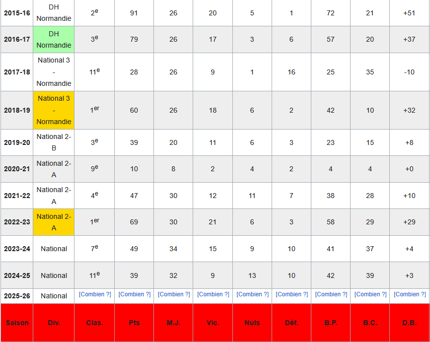 - Champion de groupe de National 3 (D5) : 1999, 2019